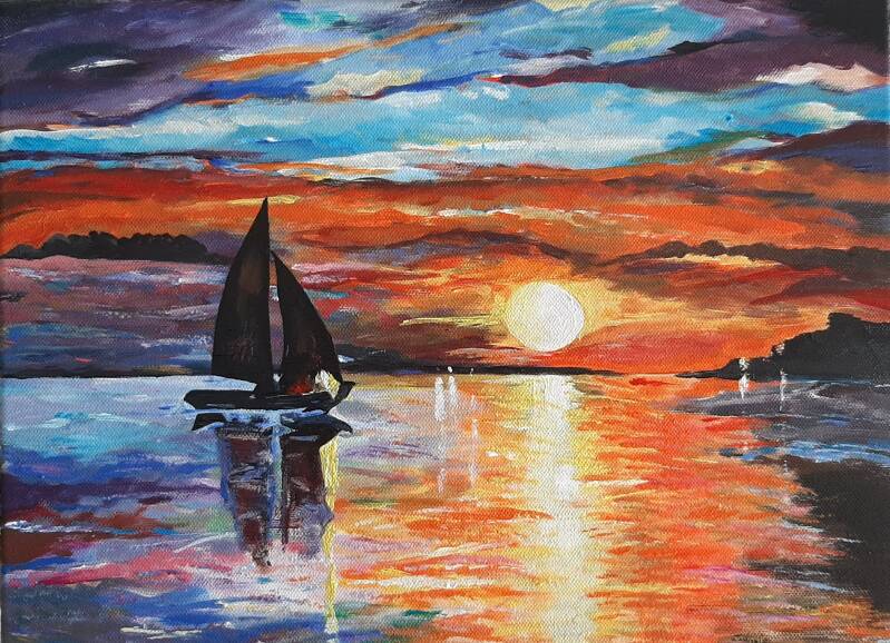 Acryl, schuitje varen